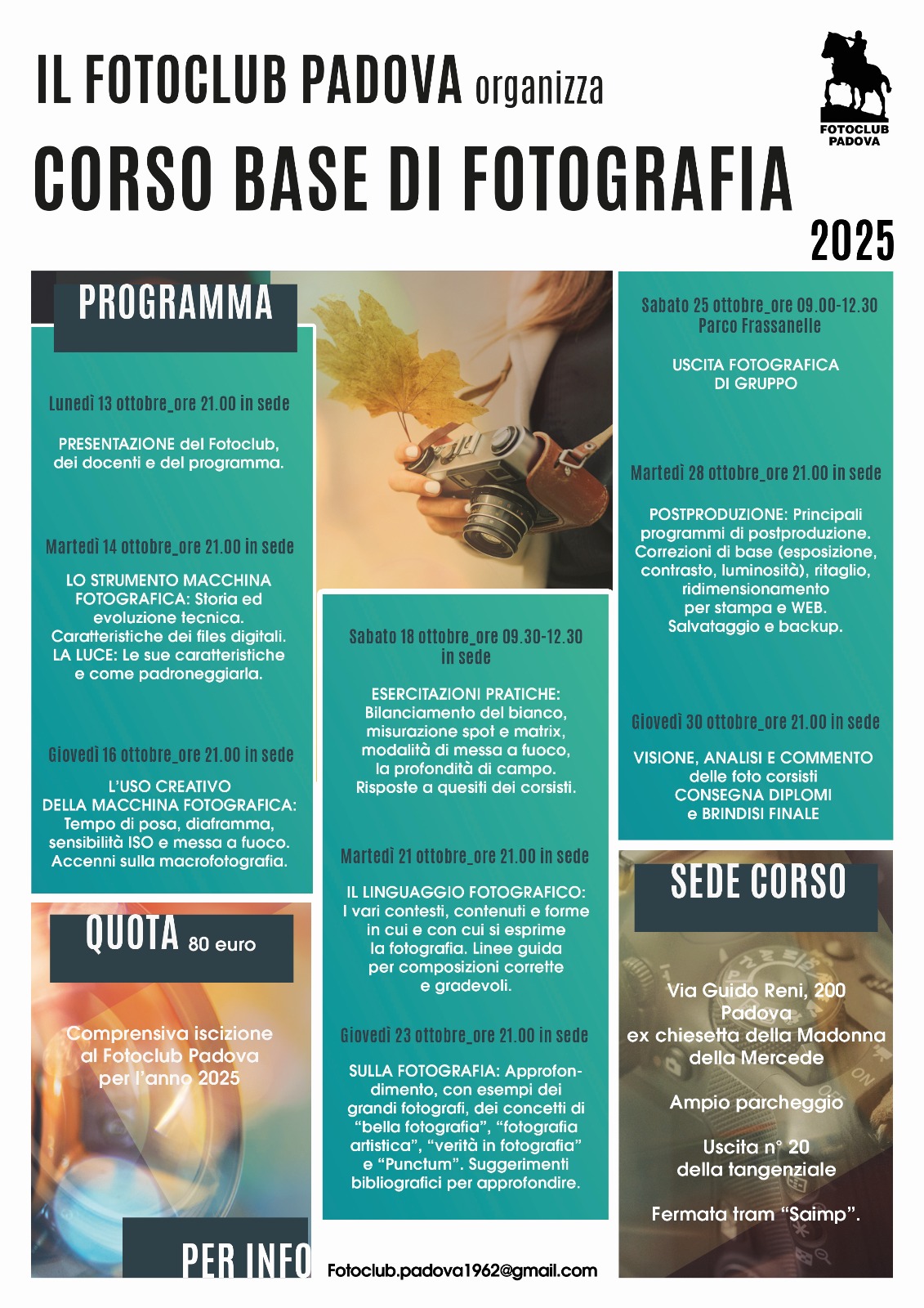 altre serate della settimana ore 21 ex chiesetta della Madonna della Mercede in via Guido Reni, 200 – Padova per i soli soci (vedi programma del mese)